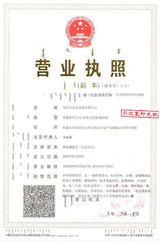 宏亮冶煉營業執照